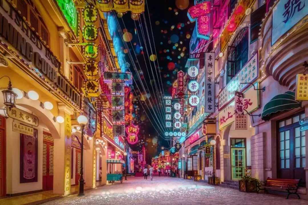 完成“油改电”后的横店镇广州街香港街影视基地夜景丨王从航 摄