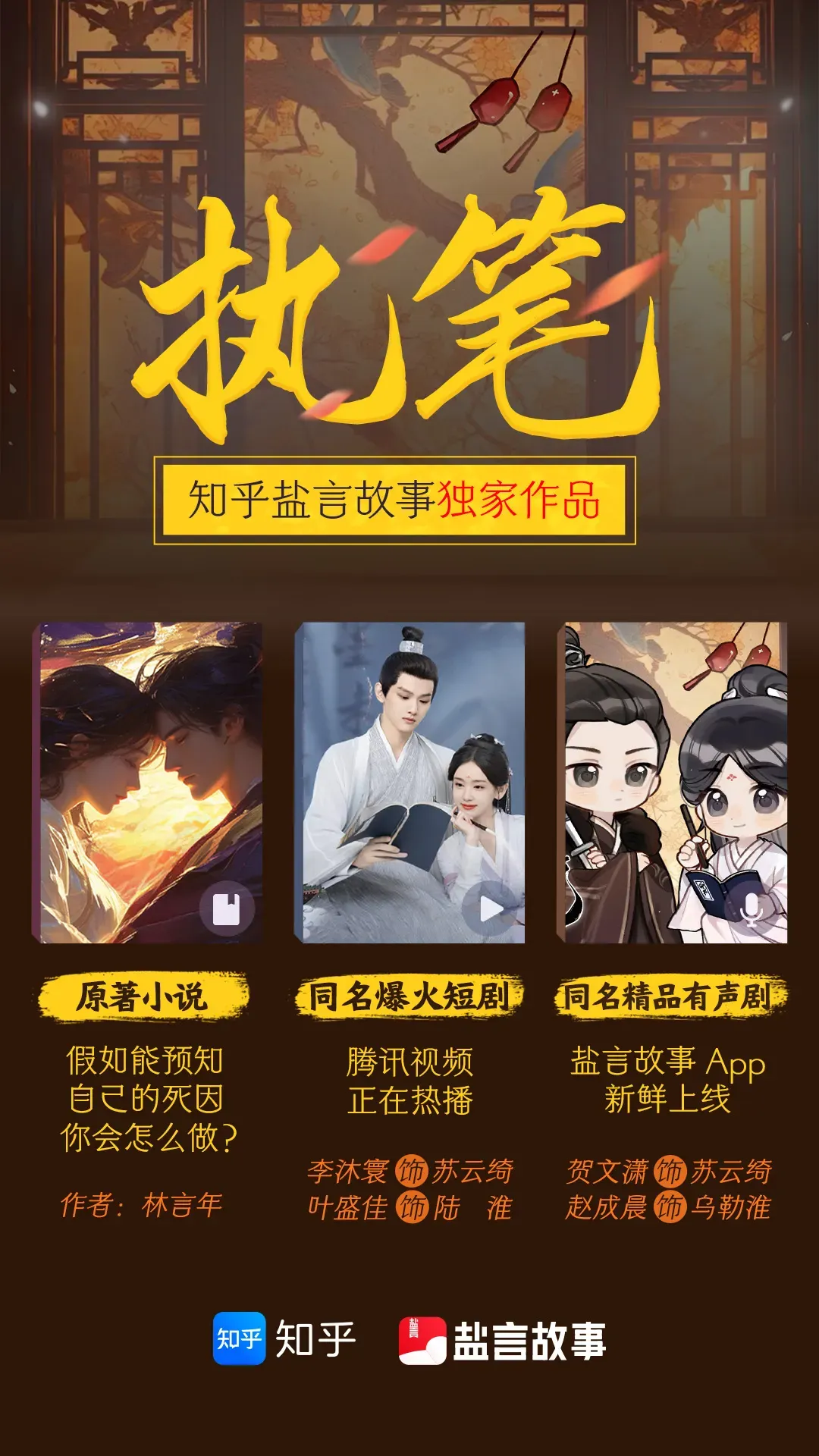 倾力创作并参与编剧,以其紧凑剧情、精湛的演技和出色的制作水准,迅速在各大社交媒体平台掀起一股观剧热潮。同时由盐言故事独家出品、播出的精品有声剧《执笔》也同步上线,也让知乎盐言原著小说受到更多关注。