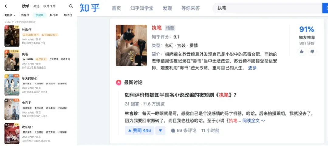 >知乎小说改编短剧《执笔》爆火后