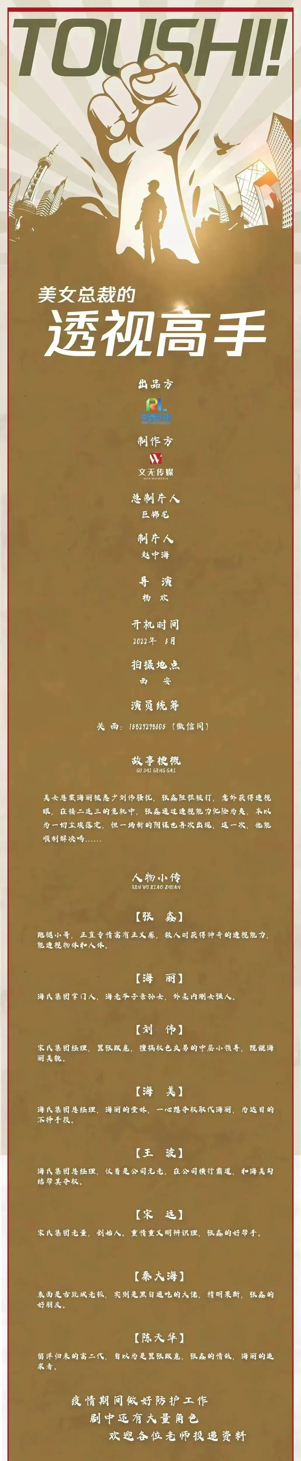 >短剧《美女总裁的透视高手》招募演员