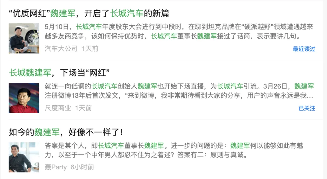近期自媒体们在聊到长城汽车、魏建军时,“网红”开始成了魏建军的标签。