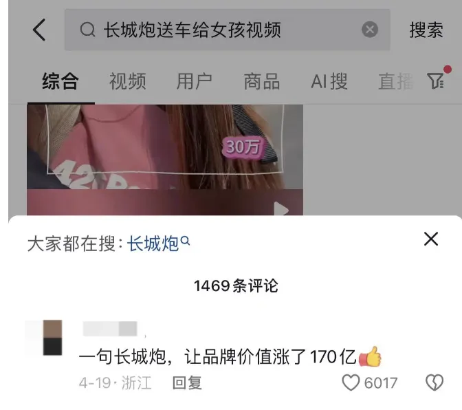 还有网友发现,因为一句长城炮,让品牌价值涨了170亿。