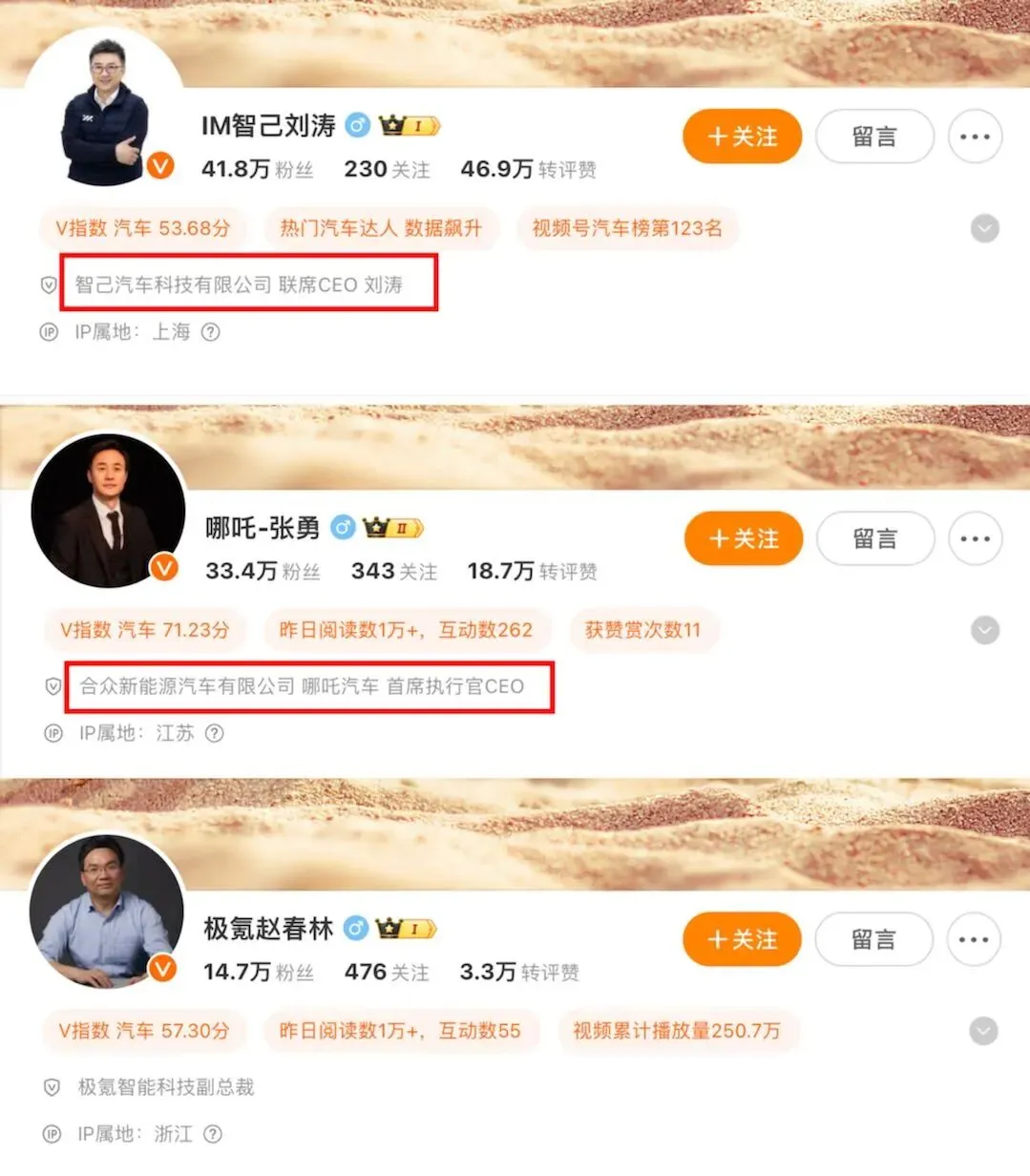 除此以外,智己汽车的联席CEO刘涛、哪吒汽车的CEO张勇、极氪的科技副总裁赵春林,均在社交平台上异常活跃。