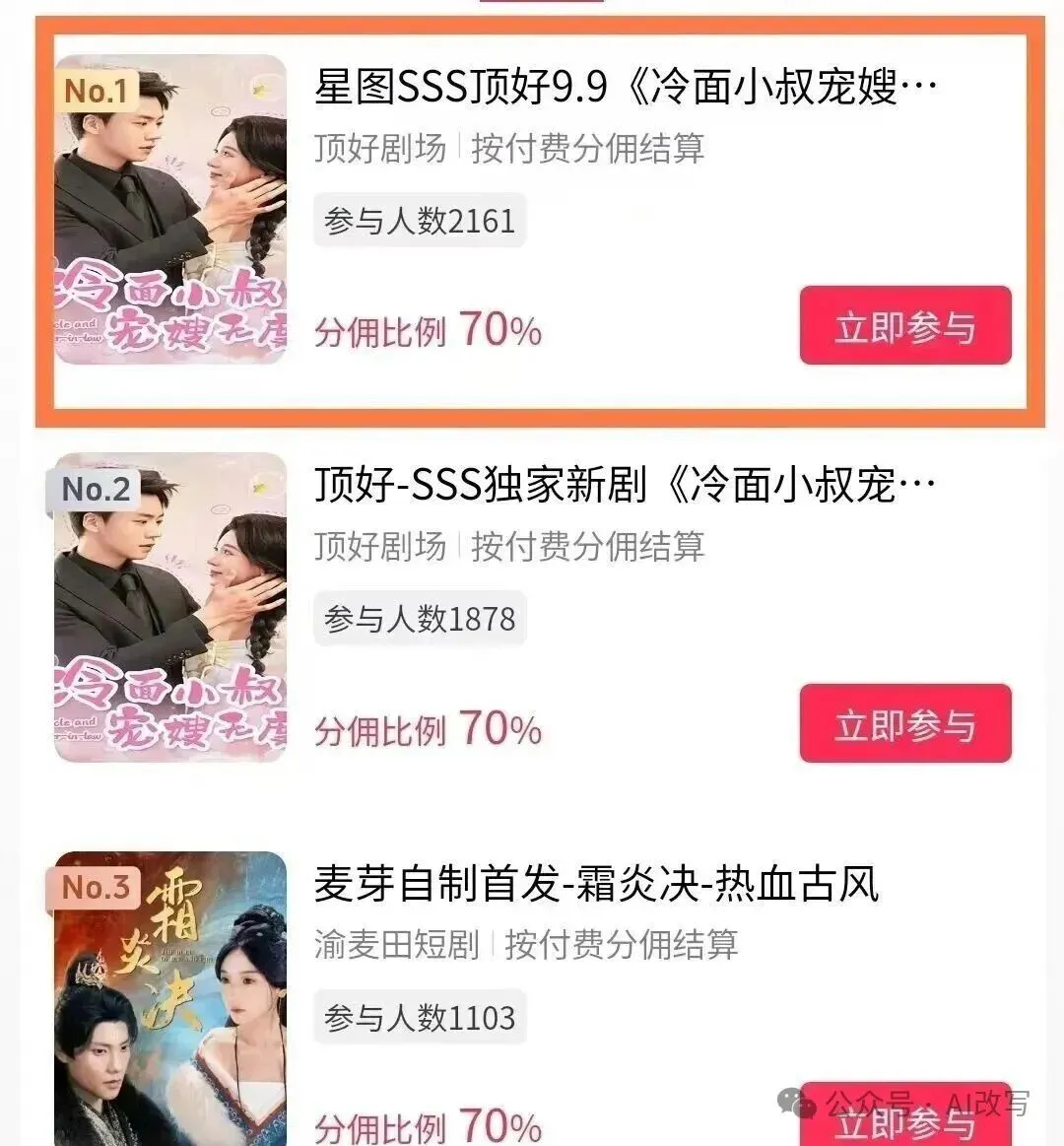 通过零花熊生成的短剧视频,上传到各大视频平台之后,当有人刷到你发布的短剧视频,点击了红框的位置!你就能从中获取佣金收入,很多短剧的佣金高达70%。