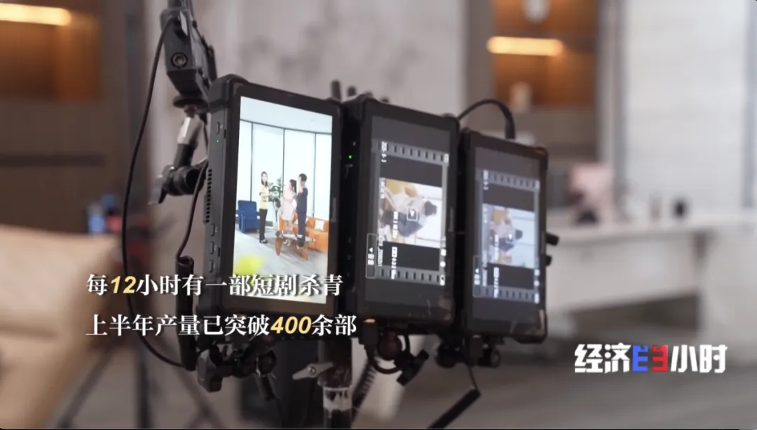 这个基地打造了“一分钟生态圈”——住宿到工作、工作到就餐、换景转场均在一分钟内完成。日均3到5组摄制组、超过400人在20座智能影棚中昼夜运转,每12小时便有一部短剧杀青,上半年产量已突破400余部。