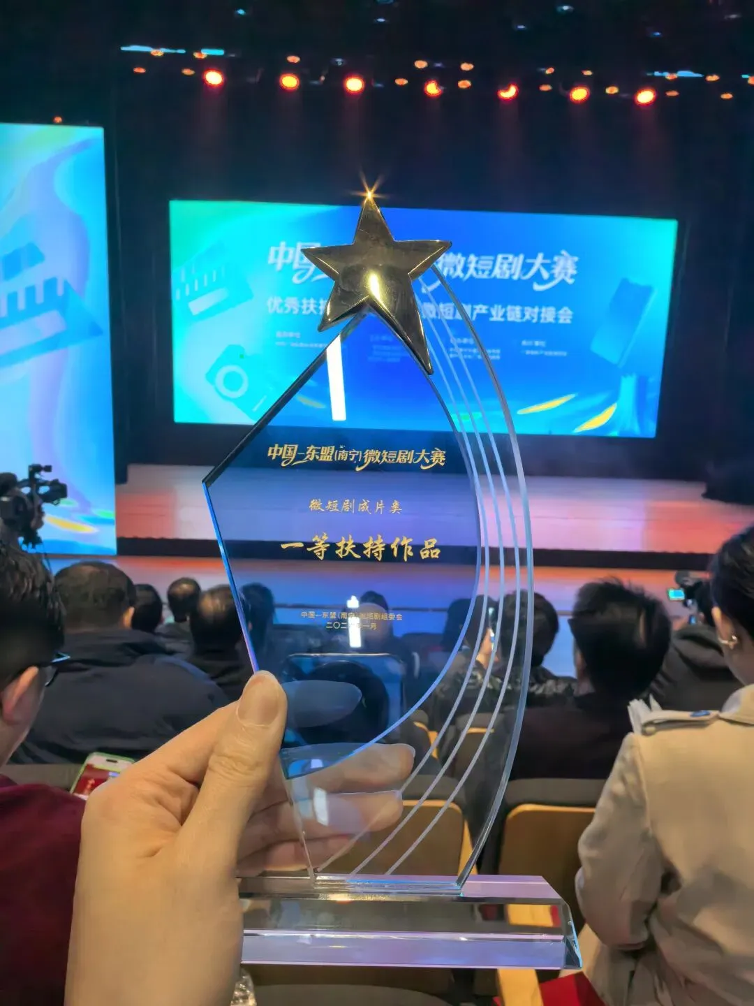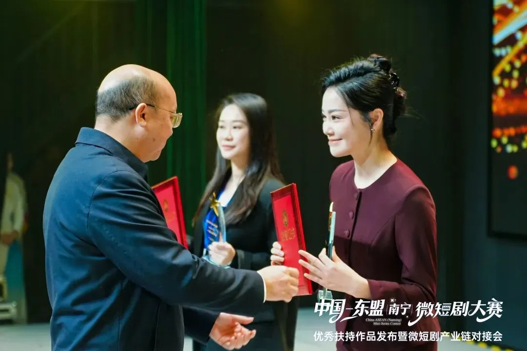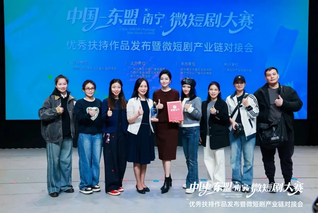 1月29日上午,在南宁三街两巷人民剧场举行的中国—东盟(南宁)微短剧大赛优秀扶持作品发布暨微短剧产业链对接会上,《漓歌》主创、广西广播电视台经济广播FM97.0 主持人张一代表主创团队登台领奖。这份荣誉,是山水的馈赠,是文化的回响,更是广西“微短剧+文旅” 的高光时刻!