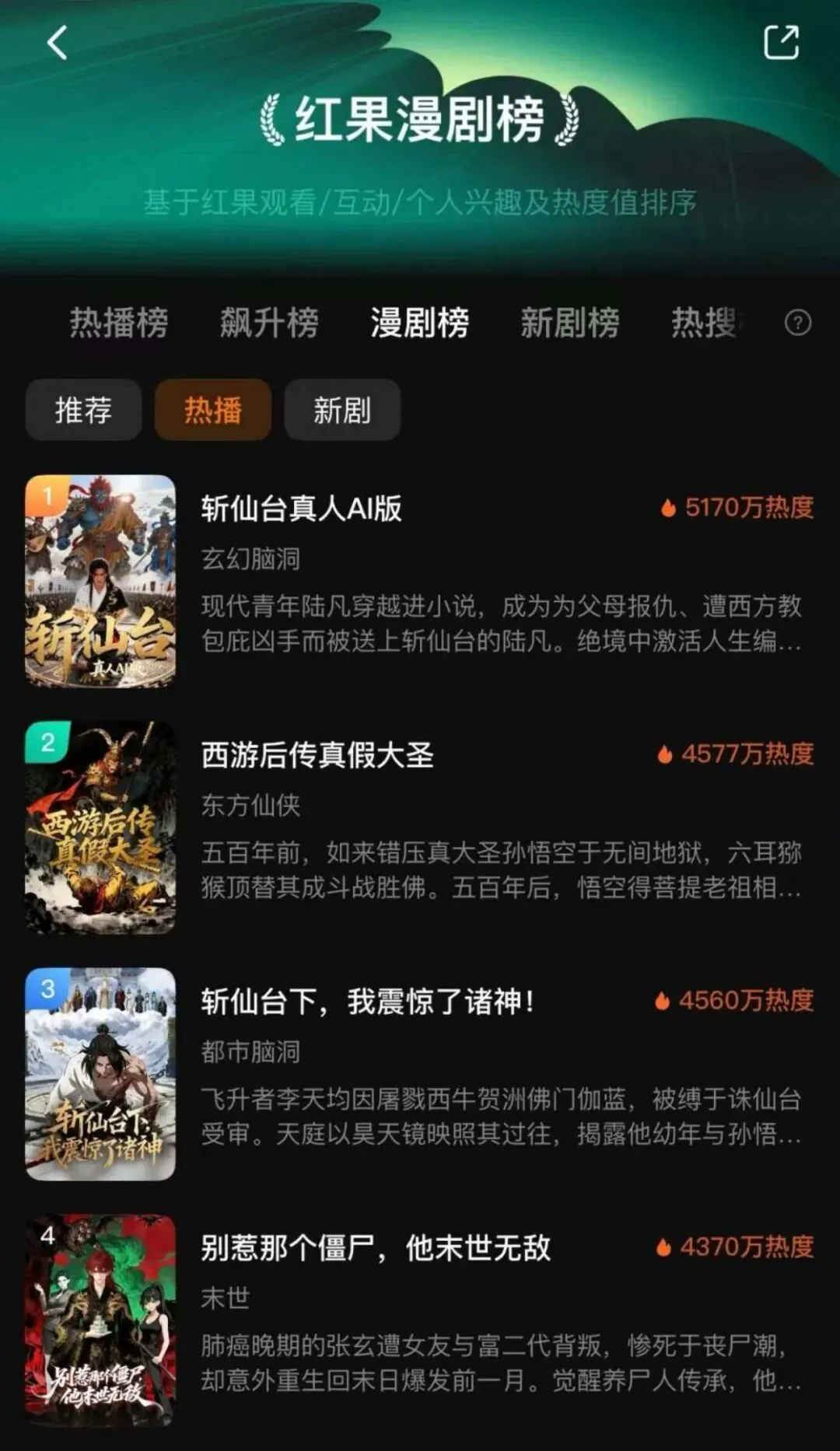 爱看互动出品的开年爆款AI真人短剧《斩仙台AI真人版》表现尤为抢眼,上线仅两天便登顶红果漫剧热榜、DataEye抖音动态漫榜首,六天内播放量顺利破亿,刷新行业增长速度。