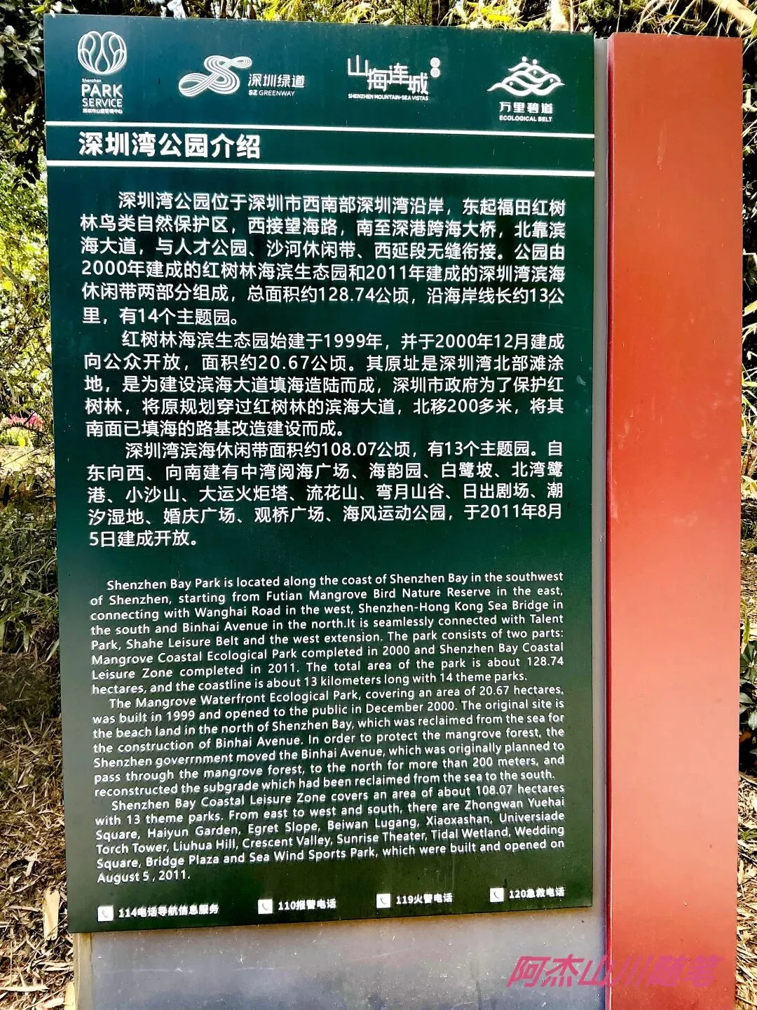 1.公交路线:红树林公交站下沿路标到达海滨,顺着海滨观光路线步行到深圳湾,坐地铁9号线返回。