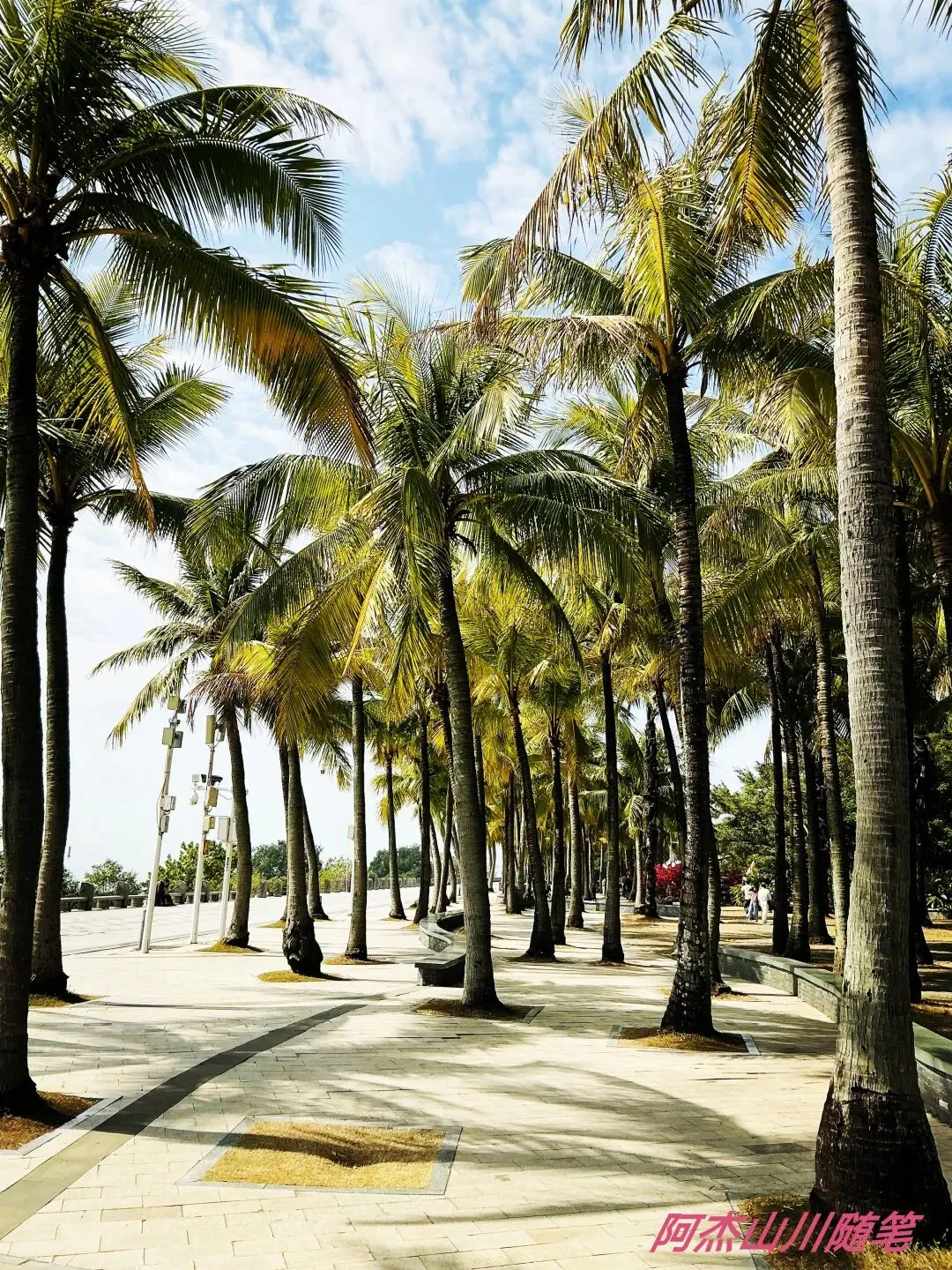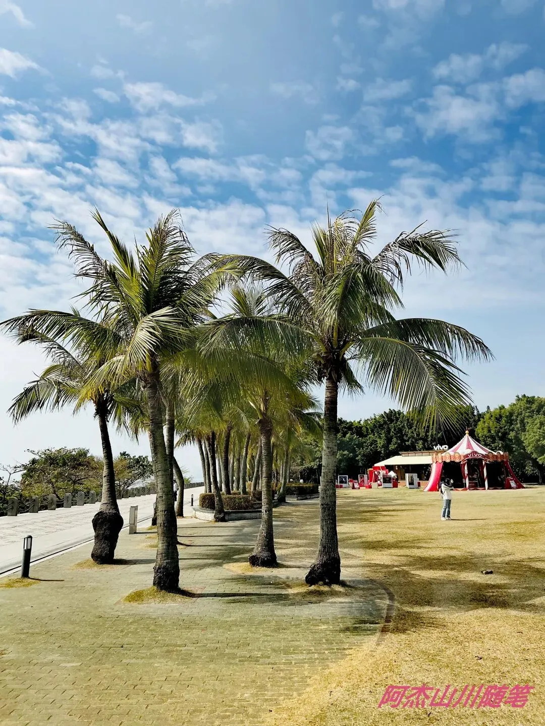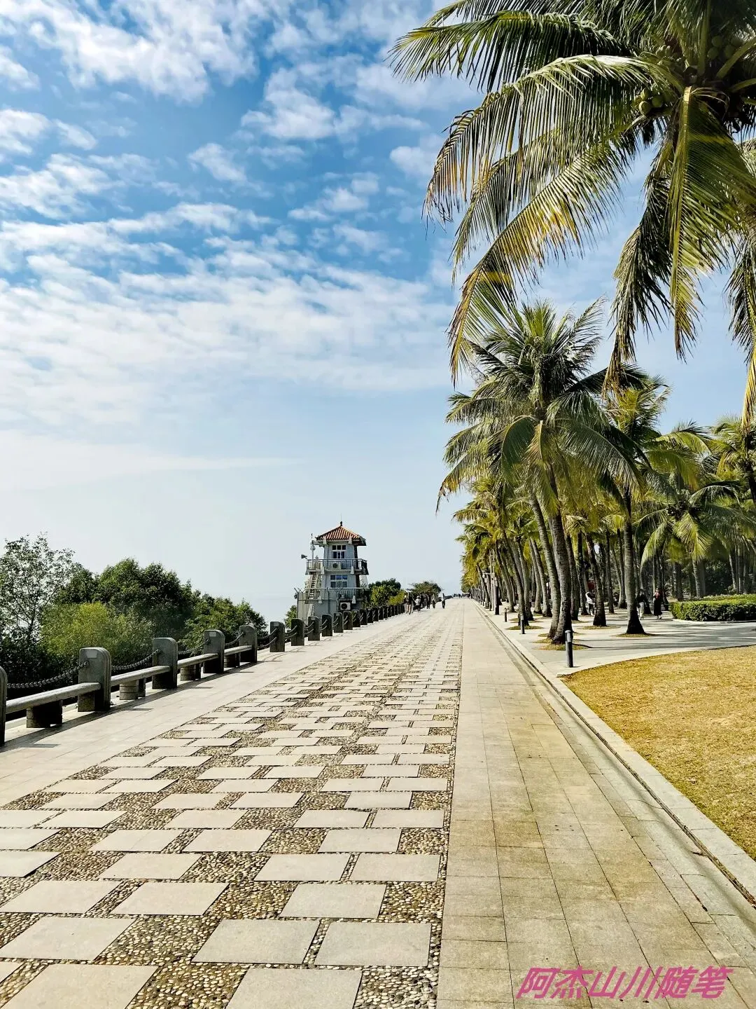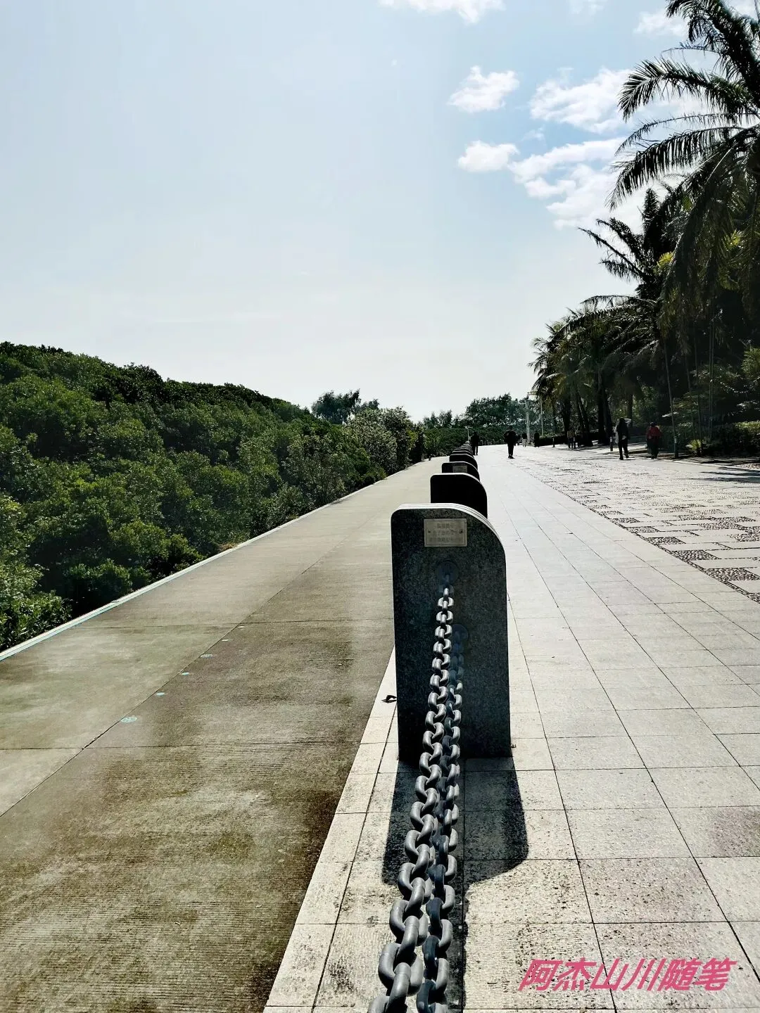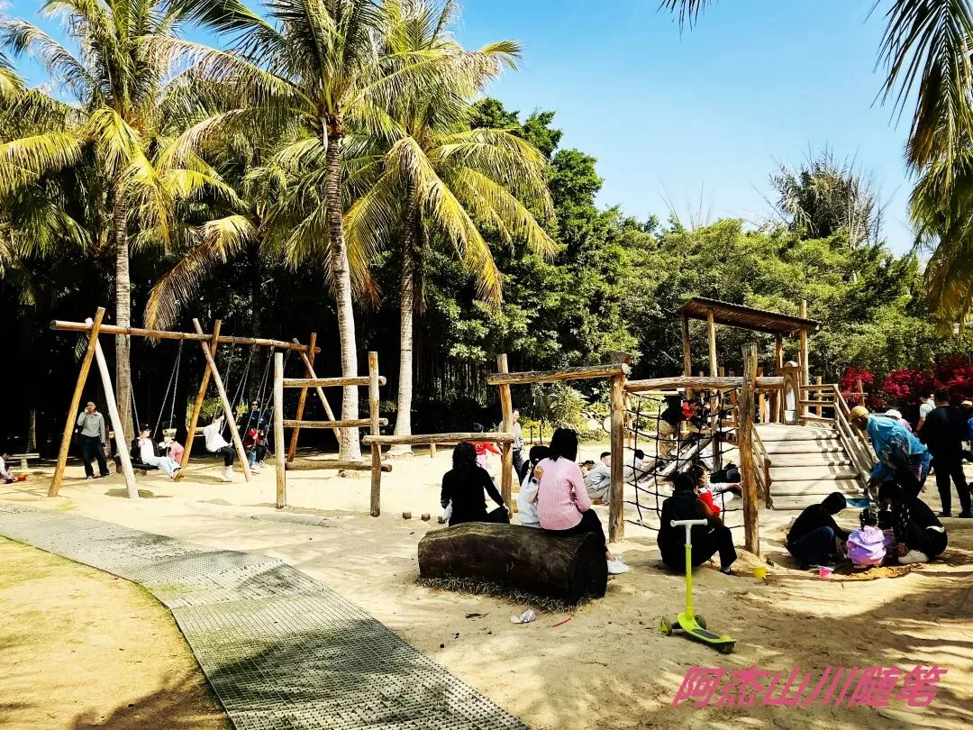 沿途的风景尽收眼底,左边是海,海对面是中国香港,右边是高大的椰子树,仰头是蓝天白云……儿童乐园里的孩子真幸福,尽情地玩沙、尽情地游戏,他们的爸妈也解放了手脚,可以暂时不用看娃。