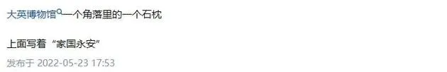 一个高赞回答是:大英博物馆角落里的一个石枕,上面写着“家国永安”,这四个字放在枕头上的含义,可能只有中国人才懂。正如北京故宫博物院前院长单霁翔所说:“文物只有在原生地展示,才最有尊严。”