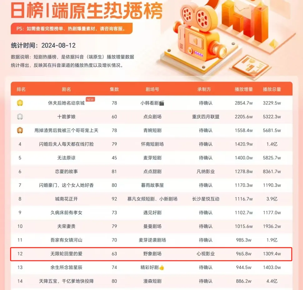 心视影业出品的短剧《无限轮回里的爱》在多平台热播。
