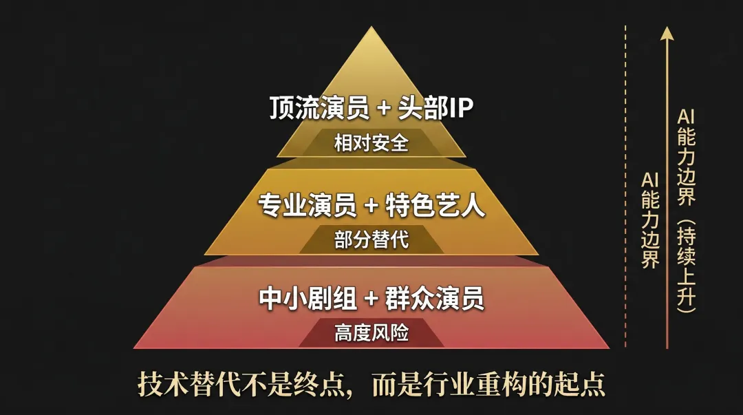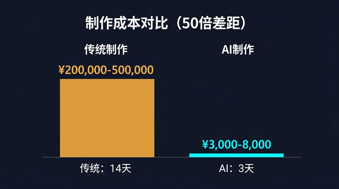 2. 成本优势无法逆转当AI制作成本是真人的1/50,这个差距不是靠努力能弥补的。中小成本剧集首先受冲击,头部IP和顶流演员相对安全——但只是「相对」。