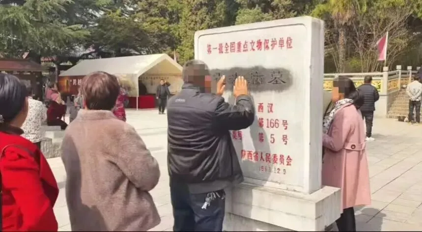 近期,也有网友发视频,陕西茂陵东霍去病墓所在区域,一写有“文物保护单位”的标志碑被游客排队“摸秃”,画面显示原本白色的墓碑已变为黑色,周围有一定数量游客围拢。部分网友认为有游客追热度,或意在以谐音的方式“祛病”,同时调侃“不如去辛弃疾墓”、质疑是否影响正常参观、是否损坏文物的声音出现。
