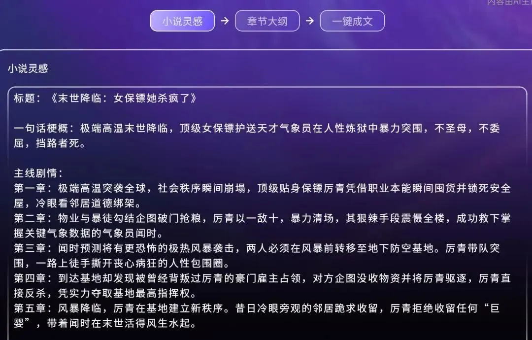 说到底,用AI写出网文套路还真挺容易。选好文风、视角、平台,直接生成大纲和章节,写作基本不用被灵感折磨,AI帮你定好结构、拆解榜单爆款小说的关键点。记者弄了十几分钟就出了个末日爽文,质量还行,但套路感重。其实网文套路多年早都标准化了,容易被AI抓住规律,批量生产。一些编剧试着用AI写剧本,觉得故事能讲但拉不了情绪,节奏带不起来,没灵魂。有的软件公司技术总监卓伊凡也玩过AI写作,说效率巨高,十几分钟能出文章框架,但是生成味很重,语言风格太一致。