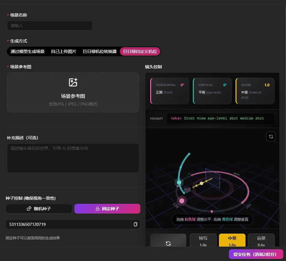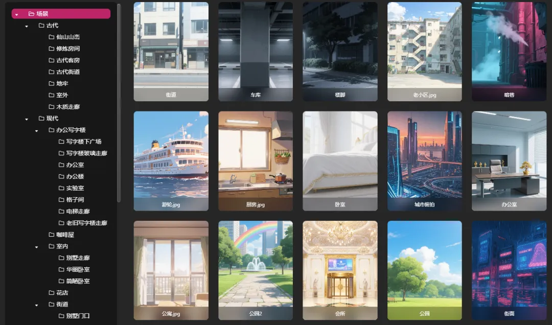 巨日禄不仅提供了一个详细的公共场景列表,还针对自己上传的场景,贴心的给了一个【自定义机位】的功能,方便你生同个场景下的不同机位,对于做短剧,保持场景的一致性,还挺实用的。