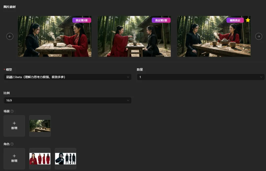 这里支持一次性生成多张分镜图,根据自己的喜好/判断,选择效果最好的一张