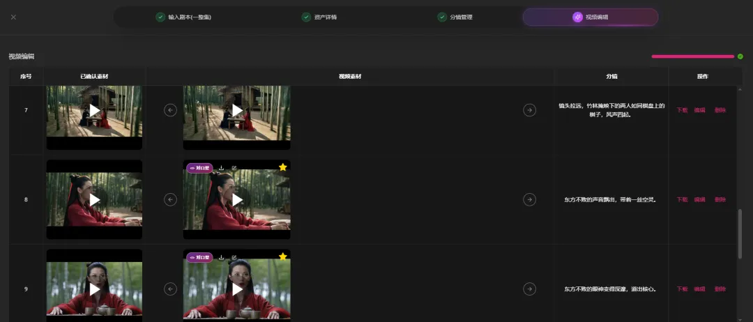 这边同样是会基于agent生成的提示词 生成多个片段,每个片段不满意都可以单独修改