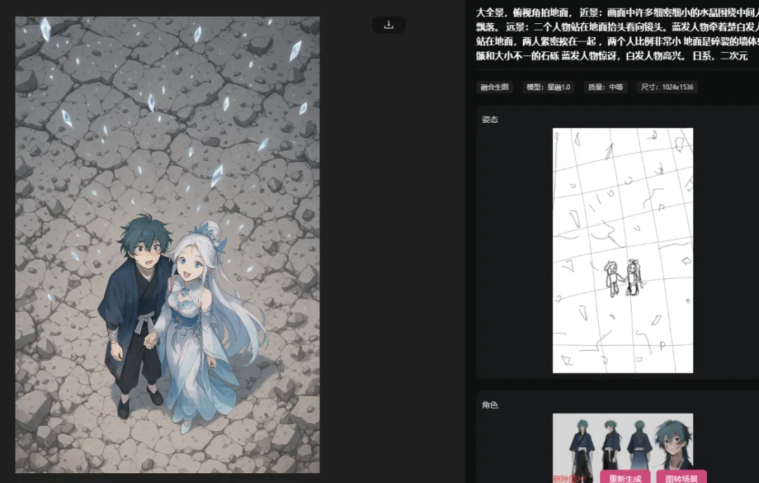 2.融图阶段,可以通过上传人物姿态图(手绘草图),确保出图的质量,再进行下一步