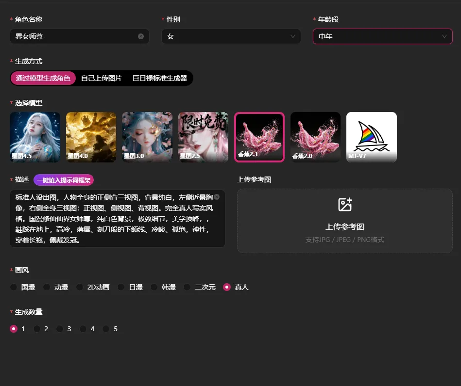资产详情里面 新增了香蕉2.1等模型,角色人物生成更加真实