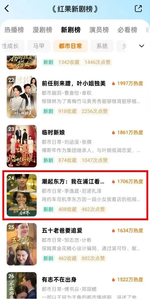 新剧榜都市日常板块第24名
