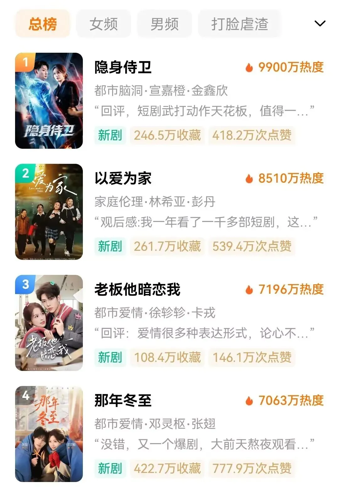 《隐身侍卫》、《以爱为家》、《老板他暗恋我》、《那年冬至》这些短剧真的是太好看了,完全停不下来了。