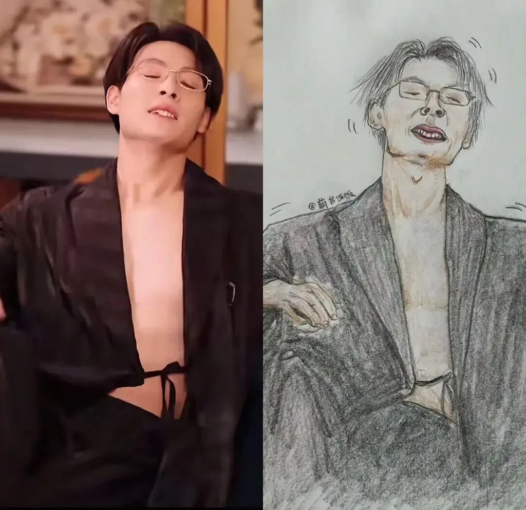 原本他在不少作品中的气质偏冷、偏稳,带点压场感,结果到了手绘接龙里,居然和梁思伟一起被画成“地上趴着”的连环名场面,画风瞬间从帅气切到喜感,反差非常直接。
