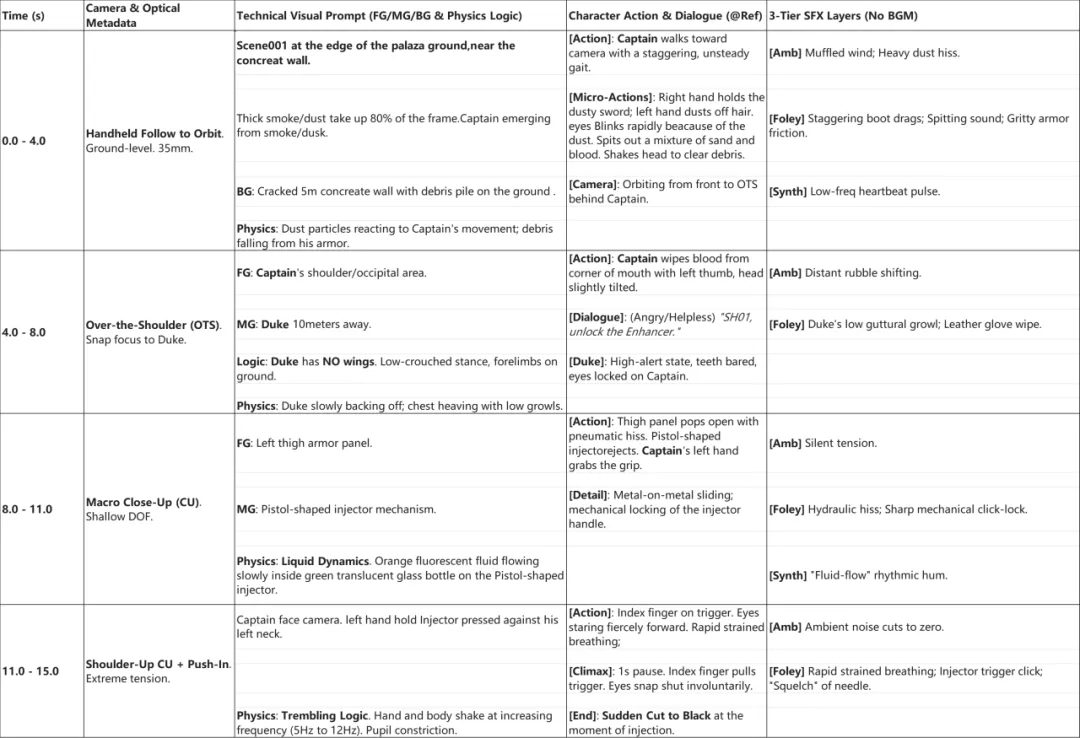素材准备完成后,朱斌再运用AI视频工具进行内容生成。大潮君看到,朱斌给AI下的指令非常细致——眼睛凶狠地望着前方,瞳孔缩小,呼吸急促,身体和握枪的手开始微微颤抖(颤抖幅度和频率逐渐增加)……AI将指令拆解成分镜头脚本,再根据脚本自动生成成片。创作过程中,废片是不可避免的,很多创作者往往需要生成多次才能得到一条可用的素材。