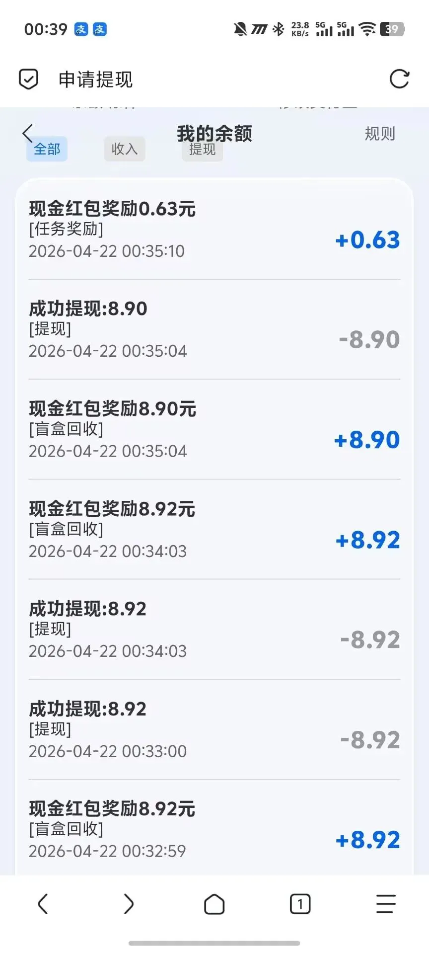 拆盲盒一天一个号3-8润左右,提现秒到账